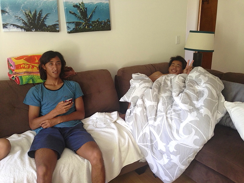 そうそう、本日私の友人のオバサマがリーフ・マッキントッシュのお母さんだったってことが発覚。連れ子なので、姓が違うからなんか話がつながらないなぁと思ってたんだけど、あ、そうなのね、これでようやくすべてがつながったわ、って感じでびっくり。この時期のノースショアでは、どんな人が身近にいるかわからんので、ホント油断ならんね(笑)。