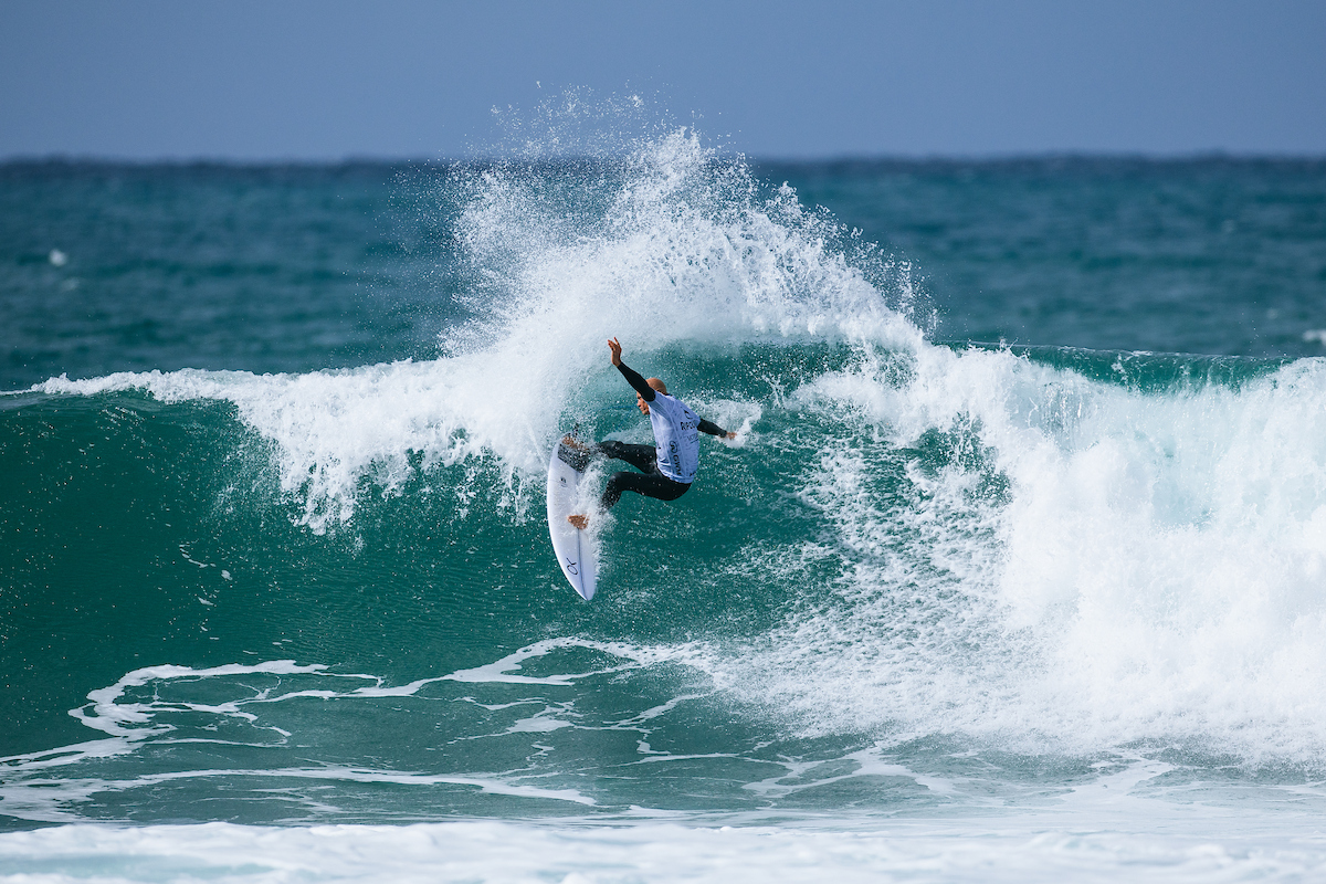 ラウンド3のミック・ファニングVSカノア・イガラシ。すっかりリズムが外れた感じだったミック。でも、外れちゃった理由はプライオリティのコールミス。問題はヒートスタートのノープライオリティシチュエーションの時の出来事。タヒチ以降、WSLでは新しいブロッキングの追加ルールとして、ヒートスタート時のノープライオリティシチュエーションの時には、相手を波に乗らせないためのブロック目的のパドルをした場合、プライオリティを失う、というものが加わった。無駄なハッスルを避けるためね。