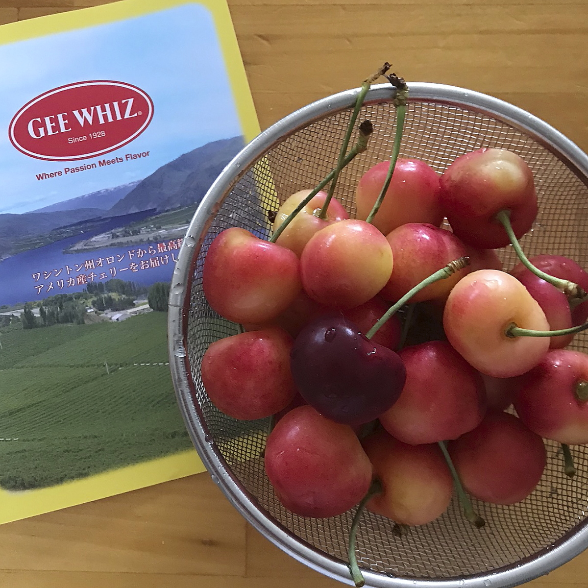 アメリカのハンティントンでマツというレストランをやってる30年来の友人のユウジから、巨大で超甘い、アメリカ産レイニア種のサクランボが届いた。どっさり2キロ!